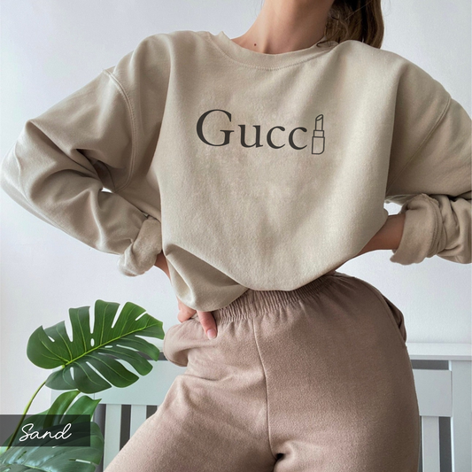 Gucci Lipstick Sweatshirt, Designer Inspired Funny Minimalist Trendy Sweatshirt